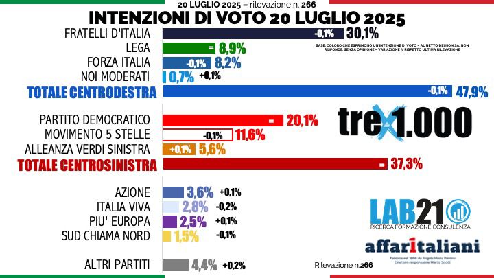 Lab 21.01 per Affaritaliani.it del 20 luglio 2025