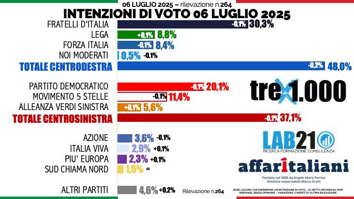 Lab 21.01 per Affaritaliani.it del 6 luglio 2025