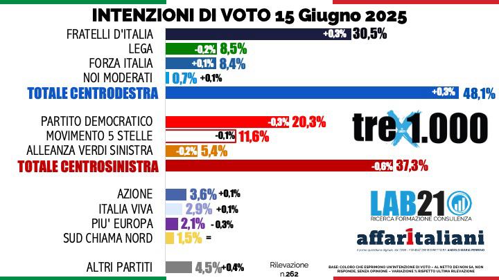 Lab 21.01 per Affaritaliani.it del 15 giugno 2025