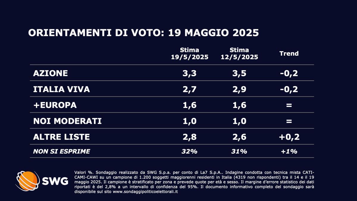 Swg per il Tg La7 del 28 aprile 2025
