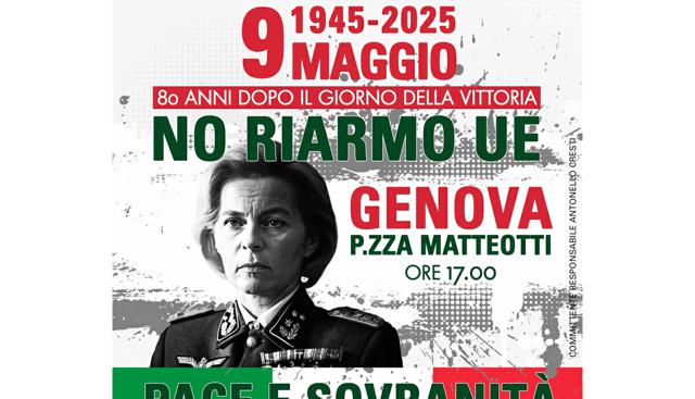 Ursula 'nazista'. In piazza a Genova contro von der Leyen che vuole mandarci a morire per l'Europa