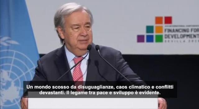 Siviglia, 27 giu. (askanews) – Il segretario generale delle Nazioni Unite Antonio Guterres sollecita un aumento degli aiuti internazionali in un “mondo scosso da disuguaglianze, caos climatico e conflitti violenti” all’apertura della Conferenza delle Nazioni Unite sul finanziamento dello sviluppo a Siviglia.Per questo ha esortato esortato i potenti del mondo a “far fluire rapidamente le risorse”, poiché i tagli guidati dagli Stati Uniti mettono a repentaglio la lotta alla povertà e al cambiamento climatico. Guterres afferma ai delegati che due terzi degli obiettivi di sviluppo sostenibile delle Nazioni Unite fissati per il 2030 sono “in ritardo” e che sono necessari oltre 4.000 miliardi di dollari all’anno di investimenti annuali per raggiungerli.