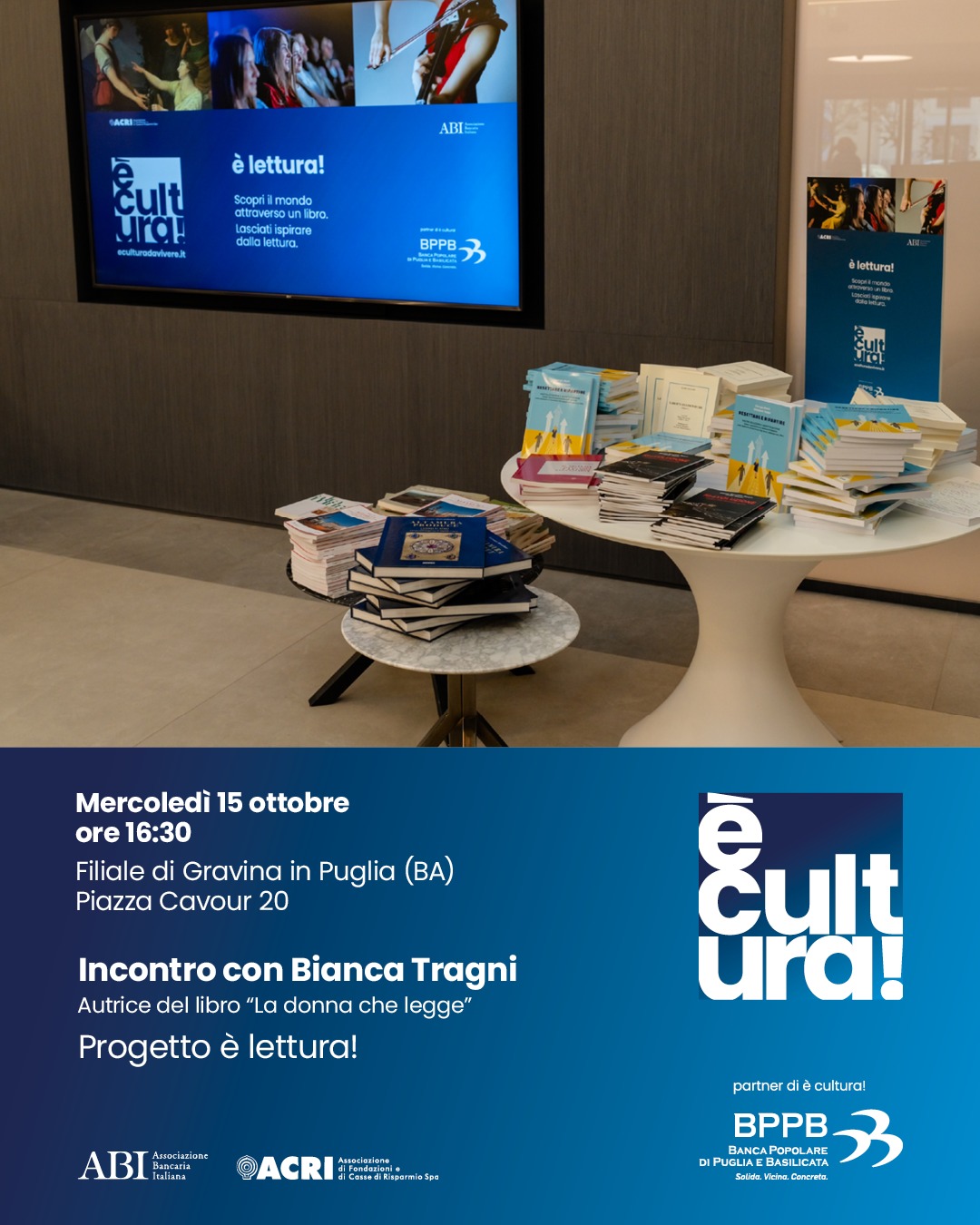 È Lettura 2025: la Banca Popolare di Puglia e Basilicata promuove la cultura a Gravina: ospite Bianca Tragni.