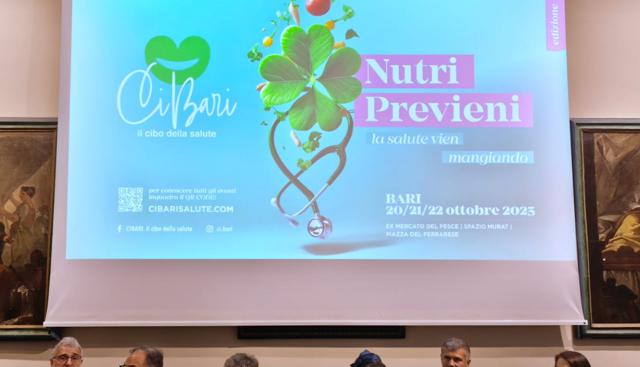 Tre giorni dedicati all'incontro tra ricerca scientifica e cittadini, cultura e territorio, salute e ambiente. Un unico evento, “CiBari: il Cibo della Salute”, che vede il Centro Interdipartimentale “Cibo in salute: nutraceutica, nutrigenomica, microbiota intestinale, agricoltura e benessere sociale” dell'Università degli Studi di Bari “Aldo Moro” protagonista nella condivisione di progetti, ricerche, innovazioni tecnologiche, nello scambio di esperienze e conoscenza, grazie ad un ampio programma di iniziative, gratuito e aperto a tutti. Gli obiettivi che animano “CiBari: il Cibo della Salute” sono stati illustrati nel corso della conferenza moderata da Maria Lisa Clodoveo, Dipartimento Interdisciplinare di Medicina UniBa, nella sala convegni della Pinacoteca 'Corrado Giaquinto', nel Palazzo della Città Metropolitana di Bari.