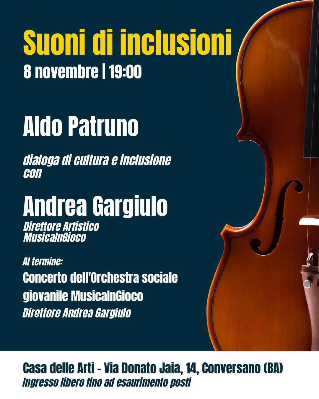 E così, diventa una narrazione l’allestimento scenico all’AncheCinema per accogliere il leader del Movimento, Giuseppe Conte, a Bari per sostenere la candidatura del già Direttore Generale del Dipartimento Turismo, Economia della Cultura e Valorizzazione del Territorio della Regione Puglia. Oppure a Conversano (Ba) - Casa delle Arti assume i caratteri armonici di un Concerto dell’Orchestra Sociale Giovanile MusicaInGioco, quale finale ‘in crescendo’ di una conversazione col Maestro Andrea Gargiulo su “Cultura e inclusione”.