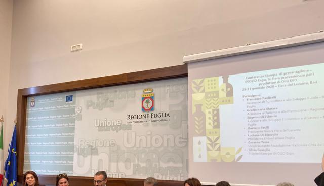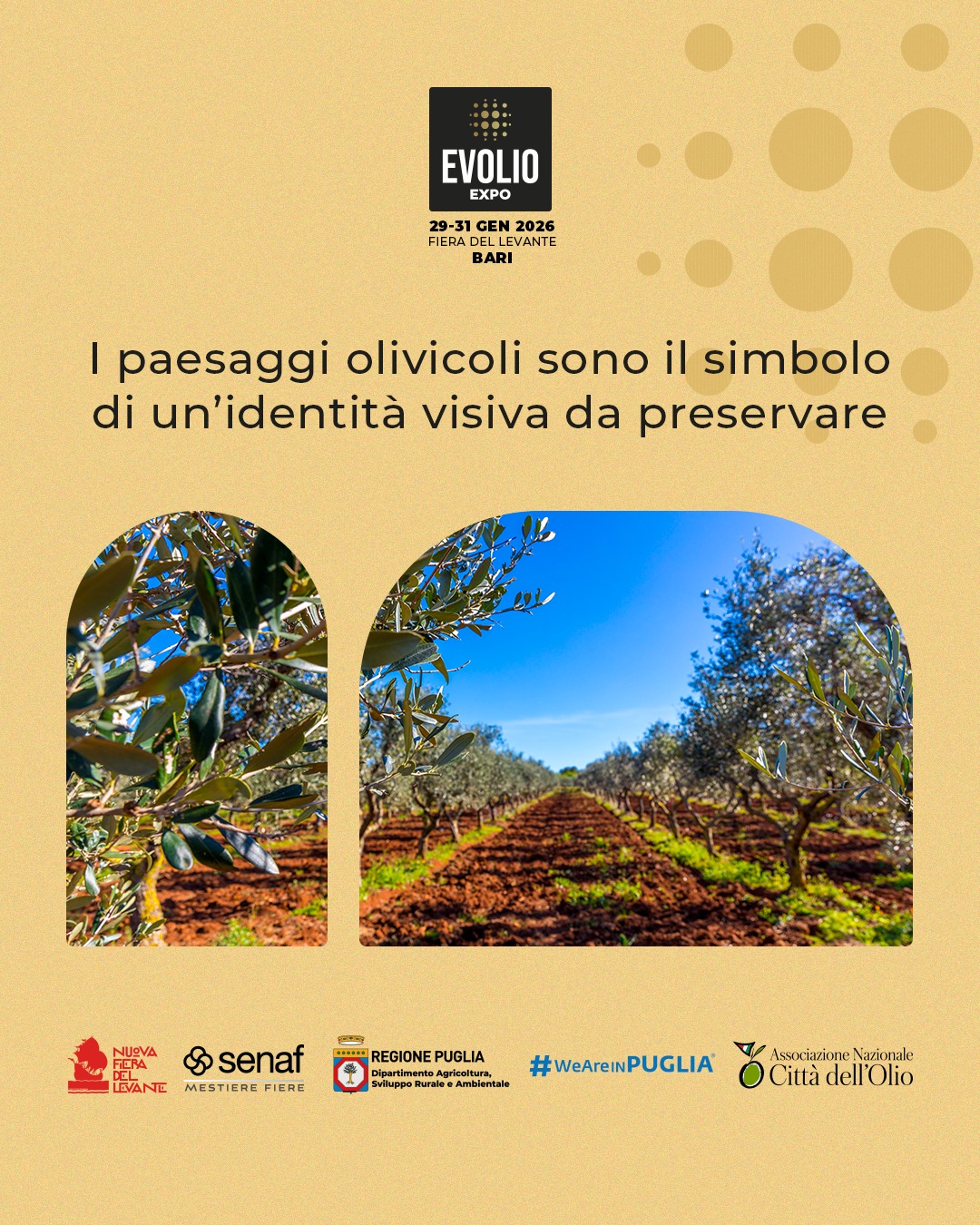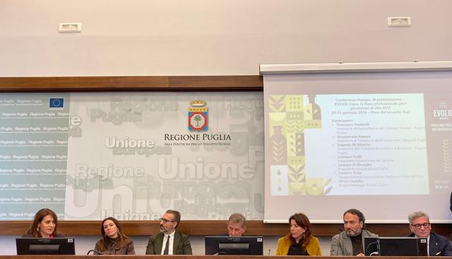 In tale scenario è stata presentata la seconda edizione di EVOLIO Expo 2026, fiera di riferimento B2B dedicata all’olio extra vergine di oliva, in programma da giovedì 29 a sabato 31 gennaio 2026 alla Fiera del Levante di Bari, patrocinata dal MASAF - Ministero dell’Agricoltura, della Sovranità alimentare e delle Foreste. La manifestazione è organizzata da Senaf per conto di Nuova Fiera del Levante con il sostegno del Dipartimento Agricoltura della Regione Puglia e del Dipartimento Sviluppo Economico, di Pugliapromozione e dell’Associazione Nazionale Città dell’Olio.