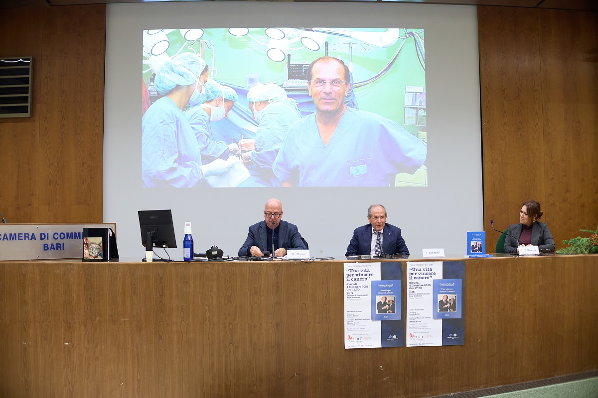 Alla Camera di Commercio di Bari, tra un pubblico delle grandi occasioni, è stato presentato “Una vita per vincere il cancro”, il libro, edito da Adda Editore, che ripercorre la vita del senologo-chirurgo, oncologo barese Francesco Schittulli, intervistato dallo scrittore e giornalista Danilo Quinto.