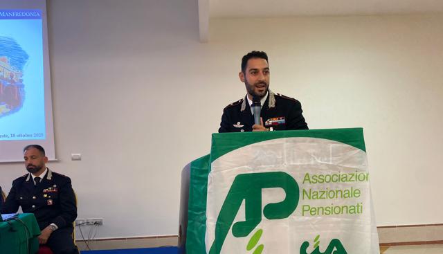 TRUFFE AGLI ANZIANI - Christopher Rossi, Comandante della Compagnia Carabinieri di Manfredonia, ha presentato "Più sicuri insieme", campagna contro le truffe agli anziani. In Puglia nel 2024 sono stati registrati 431 truffe contro gli anziani, oltre a più di 18.000 frodi informatiche. Il Maggiore Christopher Rossi ha illustrato le tipologie più frequenti dei raggiri. Bisogna denunciare, ad aver paura e a provare vergogna devono essere i criminali. A tutti può capitare di essere presi di mira o di essere truffati: informarsi, denunciare e collaborare è fondamentale per stroncare questo odioso fenomeno.