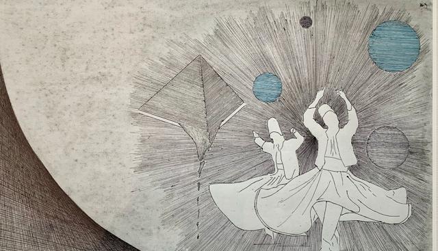 "My Name is East, My Name is West": è tutta in questa sorta di Viaggio artistico tra Oriente e Occidente, la Mostra di dipinti, schizzi e liriche di Davide Cufaro Petroni, che è anche testimonianza al contempo concreta e metaforica del ciclo della vita, nonché del percorso planetario terrestre: movimento contemporaneamente rotatorio (sul proprio asse) e rivoluzionario (tracciando l’orbita intorno al sole), che ispira lo spaesamento mistico dei danzatori dervishi e le loro roteanti coreografie senza tempo e senza confini.