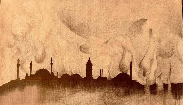 L’esposizione presenta una serie di disegni a matita in bianco e nero che catturano l'essenza di Istanbul, una città profondamente amata dall'artista. Avendo vissuto lì per diversi anni, Cufaro Petroni ha trovato in essa un'inesauribile fonte di ispirazione, affascinato dal suo mistero e dalla sua storia millenaria. Ma anche dalla luce dorata che accende tramonti da ‘Le mille e una notte’, per poi brillare come il diamante di Topkapi nei riverberi del mattino successivo. La stessa si arricchisce, inoltre, di un autentico abito antico turco, completo di copricapo e di un mantello di seta rosso firmato dalla stilista Sladana Krstic, impreziosito dalle creazioni orafe di Marina Corazziari.
