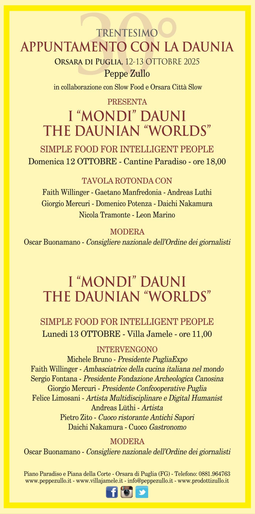 Ci sono luoghi che sembrano restare fermi nel tempo, ma che invece sanno raccontare il futuro. È da questa idea che, nel 1995, nasce a Orsara di Puglia “Appuntamento con la Daunia”, il progetto ideato dallo chef contadino Peppe Zullo, oggi giunto al suo trentesimo anniversario. Da allora, l’evento è cresciuto diventando una delle esperienze più significative di promozione territoriale e culturale dei Monti Dauni, un territorio autentico, rurale e resiliente che ha saputo farsi conoscere nel mondo.