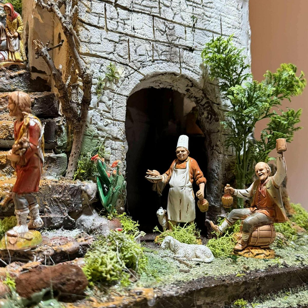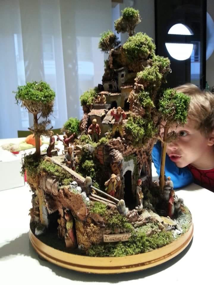“Gloria in excelsis Deo” cantano gli angeli in coro sulla grotta, mentre Maria copre amorevolmente il Bambinello nella mangiatoria - riscaldato dall’alito del bue e dell’asinello - e Giuseppe presidia la scena. Nel frattempo, i Re Magi guidati dalla Stella Cometa, il pastorello con l'agnellino sulle spalle, la lavandaia, gli zampognari, Benino dormiente e gli altri soggetti della rappresentazione, pecorelle comprese, sono tutti un gregge di sensazioni: fissati dall’artigianalità certosina e dalla passione artistica di un tipico cultore della tradizione locale.