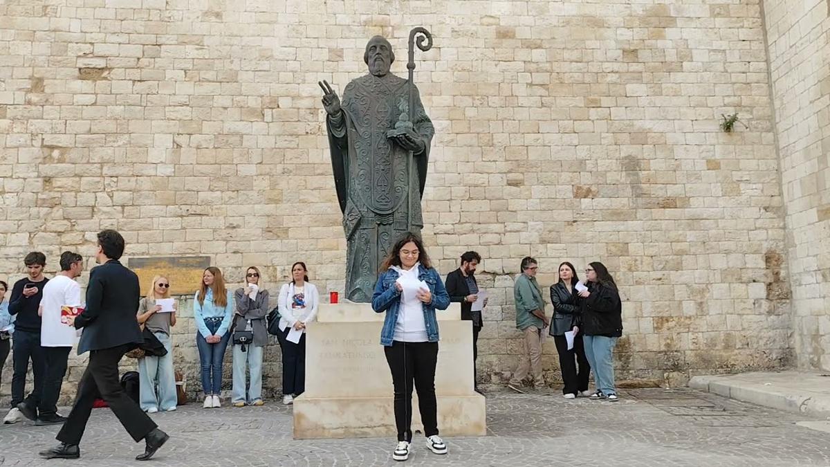 Anche a Bari la cerimonia si svolta sotto una fitta pioggia, che rendeva questo gesto ancora più suggestivo e ci avvicinava alle condizioni fisiche e psicologiche nelle quali i moscoviti lo effettueranno il 29 ottobre. A capo scoperto in segno di rispetto verso i defunti, quaranta tra docenti universitari e studenti coordinati da Simone Guagnelli docente di Lingua, Letteratura e Cultura russa presso il Dipartimento di Ricerca e Innovazione Umanistica dell'Università degli Studi di Bari e soci del CIPO (Centro interculturale Ponte ad Oriente) di Bari, in fila indiana si sono succeduti davanti alla statua di San Nicola, opera l’artista Zurab Tsereteli, pervenuta a Bari il 2003, in Largo Abate Elia di fronte alla Basilica dedicata al Santo.