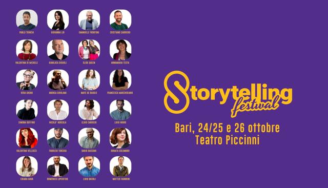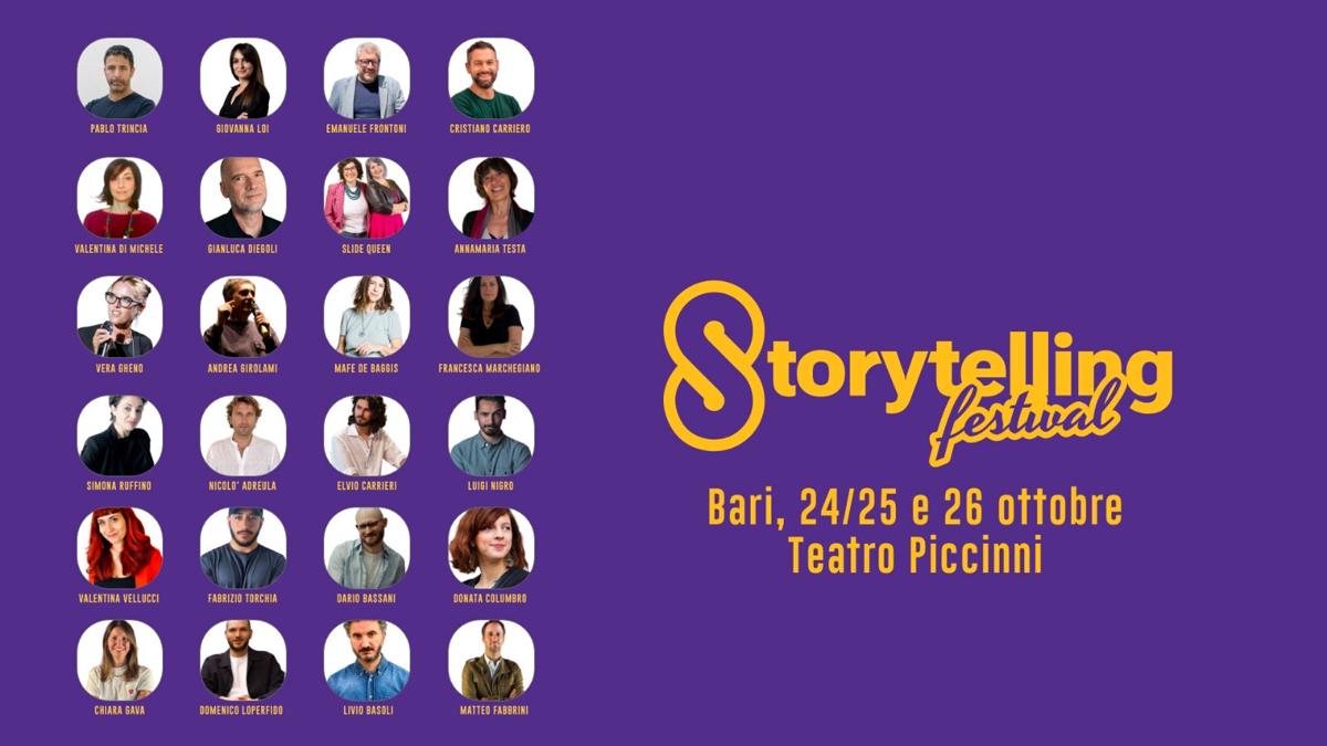 Storytelling Festival, l’evento che riunisce centinaia di aziende, manager, professionisti e studenti - ispirando e creando opportunità di networking - torna a Bari per l’ultimo weekend di ottobre. Sul palco dello storico teatro Piccinni, il 24 e 25 ottobre le storie diventeranno leve di riflessione e trasformazione, capaci di attraversare business e società attraverso un programma ricco di incontri, talk e workshop che vedranno alternarsi massimi esperti della comunicazione a grandi protagonisti della nostra cultura.