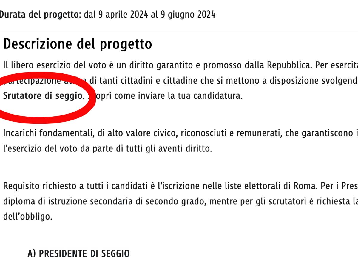 Così gli “scrutatori” sul sito web del Comune nella parte dedicata ai Servizi Elettorali curati dal Dipartimento Decentramento, Servizi Delegati e Città dei 15 minuti, diventano “Srutatori”. Ma il record della gaffe non è un primato romano. La sciatteria ha già in passato colpito i Comuni di Martellago, in provincia di Vicenza e ad Alia nell'area metropolitana di Palermo dove la Rete che non dimentica mai evidenzia lo stesso refuso. Solo che a Roma, se non fosse chiaro, viene ripetuto più volte magari alla ricerca disperata di una simil apocope o di una fantastica elisione che possa giustificare l'errore macroscopico. Guai dunque a leggere l'avviso del Comune perché si potrebbe incorrere in uno smarrimento grammaticale che su X diventa una “denuncia di classe”.