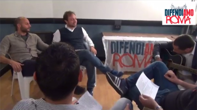 “Ai rom gli ha pure dato la sala del Campidoglio per organizzare l’orgolgio Rom” esordisce il consigliere regionale Santori, che poi dedica al primo cittadino note celebri: “Marino, questa te le meriti tutta.. “. Dai rifiuti alla Panoramica, alle strade alle promesse elettorali, il profeta della sinistra degli Anni ’70, viene piegato – e ampiamente stonato – per sostenere l’opposizione dell’associazione Difendiamo Roma, da tempo impegnata contro il degrado della città.