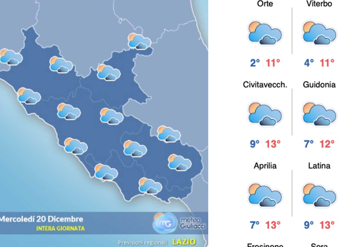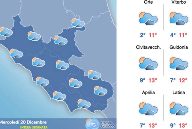 Il meteo di Roma del 20 dicembre: poco nuvoloso e freddo fino a Natale