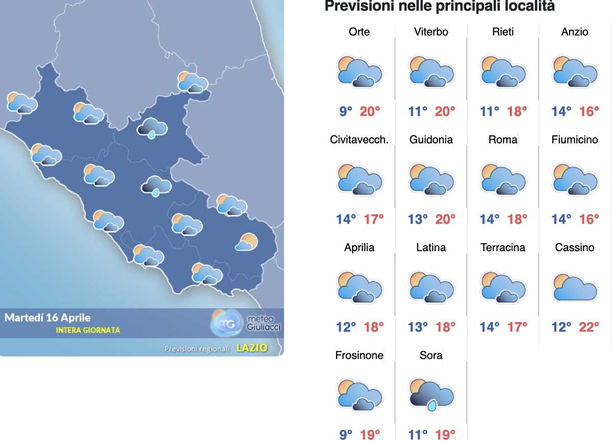 Il meteo del 16 aprile Roma e Lazio nel dettaglio