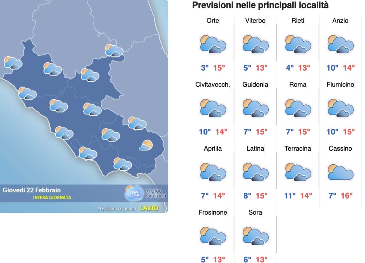 Il meteo del 22 febbraio nel dettaglio