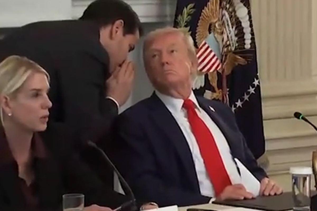 Mentre il presidente Donald Trump si trovava sul palco, il segretario di Stato Marco Rubio si è avvicinato per consegnargli un biglietto urgente, sussurrandogli poche parole all’orecchio. Pochi istanti dopo, Trump ha alzato lo sguardo verso il pubblico e ha dichiarato: