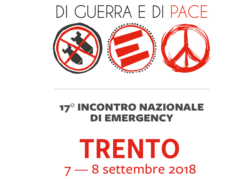 Venerdì 7 e sabato 8 settembre il 17° Incontro Nazionale di Emergency riunirà a Trento volontari e cittadini per parlare #diguerraedipace: conferenze e spettacoli per riflettere sulle migrazioni in corso, sull’innalzamento di muri, sulla perdita di umanità, sulla strumentalizzazione della paura e la rimozione della memoria. A questo link il programma completo.