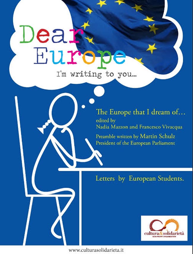 Gli studenti, penna in mano, scrivono alle istituzioni europee. E se qualcuno pensa che non conoscano i temi più attuali, più complessi, più dibattuti in questo momento storico, si sbaglia. Brexit, immigrazione, economia, educazione, istruzioni. I ragazzi sanno molto di quanto accade in Europa. E attraverso lettere molto significative, dicono la loro attraverso "Cara Europa Ti Scrivo...", settimo volume della collana editoriale di Cultura&Solidarietà e il primo pubblicato in lingua inglese. Il testo contiene 468 lettere nella lingua originale rivolte alle alte cariche delle Istituzioni comunitarie, scritte da studenti di Istituti Superiori degli Stati membri dell’Unione Europea.