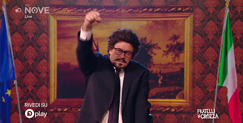 In apertura della nuova puntata di Fratelli di Crozza in onda tutti i venerdì in prima serata sul Nove, l’incontenibile entusiasmo di Crozza/Toninelli per l’approvazione del Decreto Genova si diffonde tra il suo staff fino all’arrivo di un regalo inaspettato: una mela avvelenata recapitata direttamente dalla Casaleggio Associati: “Che buona, mi sento formicolare le gambe… sarà l’entusiasmo, ma c’ho come un torpore strano. Io quasi quasi mi faccio un pisolino bello lungo… pancia a terra. Sarà contenta mia moglie, ma soprattutto gli italiani”