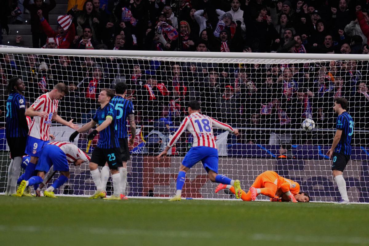 Nel finale, ecco la beffa. In pieno recupero, calcio d'angolo Atletico e colpo di testa in mischia di Gimenez per il definitivo 2-1. Prima sconfitta europea per i nerazzurri.