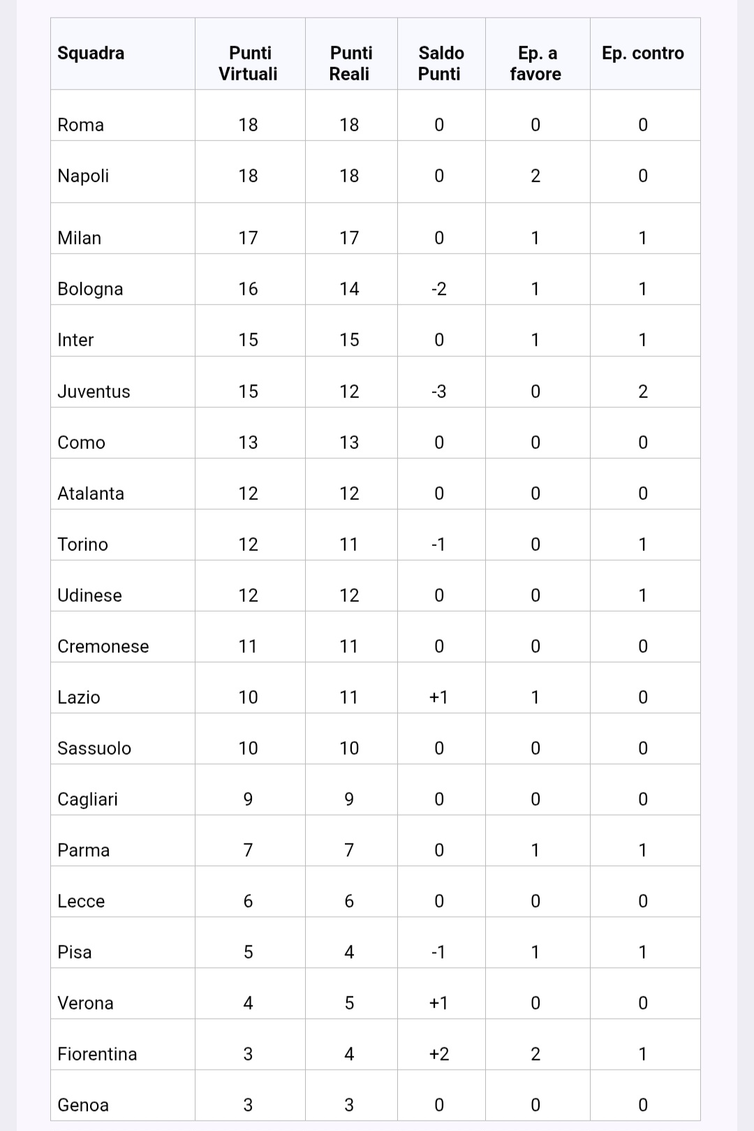 Secondo l'analisi della classifica senza errori arbitrali di Superscommesse.it, le squadre più penalizzate della giornata sono state Inter, Bologna, Milan e Juventus.