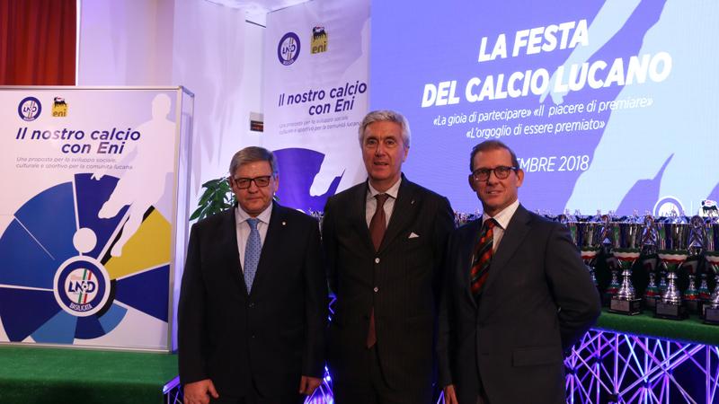 La Festa del calcio lucano è stato il terzo evento del progetto “Il nostro calcio con Eni” promosso dal CRB con il supporto dell’azienda: “Partecipare con tutti voi a questo evento è per Eni motivo di grande orgoglio che ripaga dell’impegno e degli sforzi compiuti per avviare una relazione molto forte e sentita, che vorremmo continuare a consolidare nel tempo, – ha dichiarato Walter Rizzi, Responsabile coordinamento progetti Eni Val d’Agri – perché al centro per Eni c’è sempre la persona con le sue capacità, le competenze e i sacrifici, nella vita come nello sport. Oggi vengono premiati coloro che si sono distinti nel mondo del calcio, non solo per le loro abilità sportive, ma soprattutto per essersi posti un obiettivo sfidante e averlo raggiunto. Quello che accomuna la nostra azienda a questi uomini e queste donne è la capacità di cambiare, di innovare e di avere coraggio, dei valori profondi che fanno la differenza”.