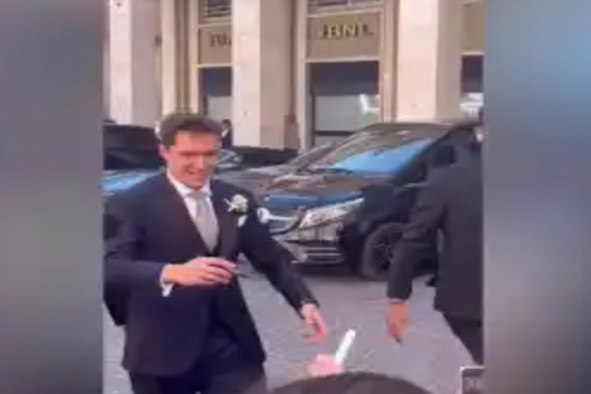 Chiesa firma autografi e scatta selfie prima di sposare Lucia Bramani