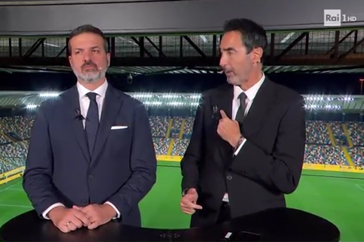 Italia-Israele, il giornalista Antinelli omaggia i colleghi morti a Gaza con un fiocco nero sulla giacca