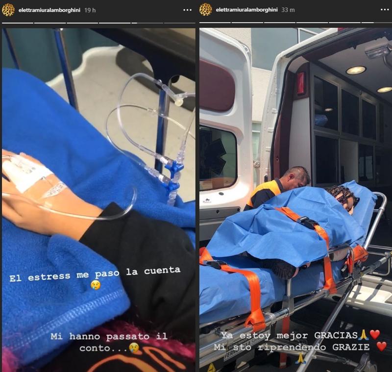 Elettra Lamborghini ha postato sulle sue Instagram Stories una foto con una flebo sul braccio e la scritta «Lo stress mi ha inviato il conto». Un piccolo malore per l'ereditiera che è stata trasportata in ambulanza.