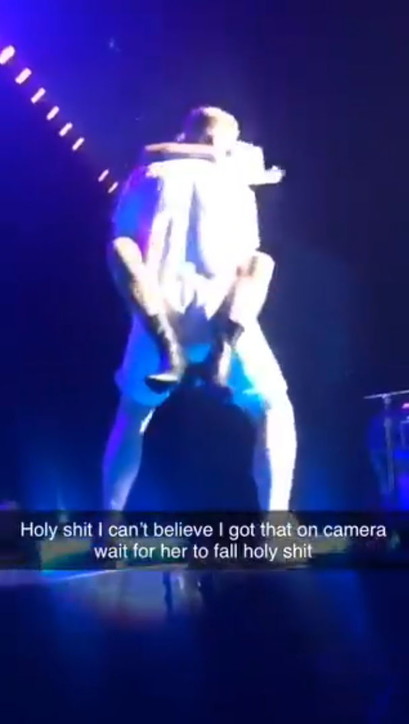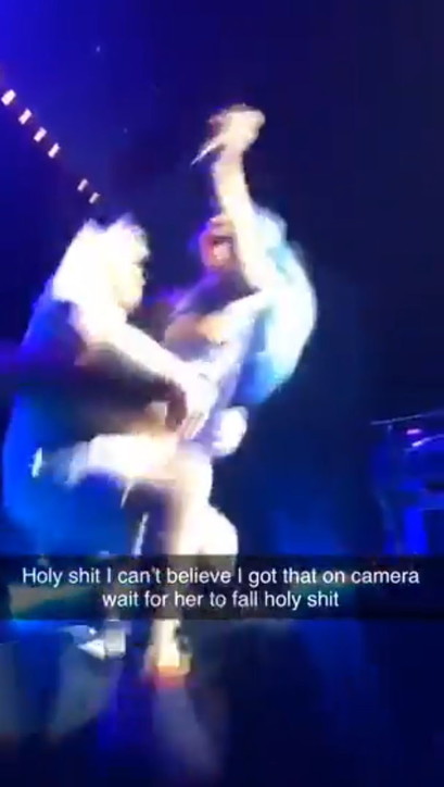 Lady Gaga cade giù dal palco insieme a un fan. LADY GAGA CHE TONFO! VIDEO