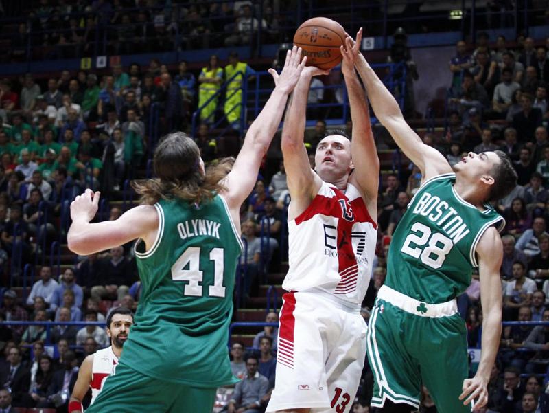 I Boston Celtics battono 124-91 l'Olimpia Milano in una delle gare della mini-tourne' europea degli Nba Global Games. Al Forum in 12000 per assistere all'evento tra la squadra di coach Brad Stevens e l'EA7. Il primo canestro lo segna Gentile, poi Boston aumenta la pressione difensiva e sporca qualche possesso dell'Olimpia. Tre tiri liberi di Isaiah Thomas permettono ai Celtics di schizzare avanti di cinque punti sul 14-9. Poi Milan Macvan, che era partito dalla panchina, mette due jumper lunghissimi e riporta l'Olimpia sotto di due sul 19-17. Ma i quarti di 12 minuti sono un problema per l'Olimpia, Boston costruisce una grande quantita' di tiri liberi e impone la propria fisicita' giocando quasi sempre con due lunghi che intasano l'area.