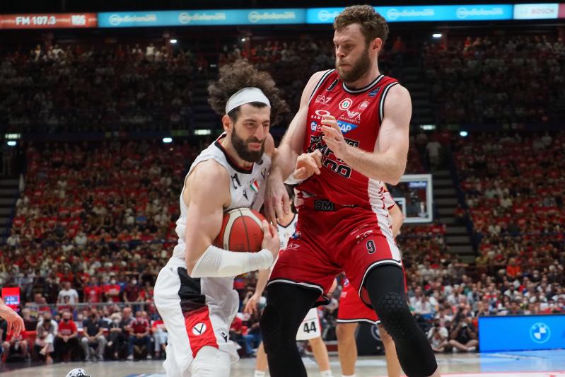 Virtus Bologna: Tessitori 2, Belinelli 2, Pajola, Sampson 8, Cordinier 2, Mannion ne, Alibegovic ne, Jaiteh 12, Shengelia 21, Hackett 3, Weems 4, Teodosic 8. All. ScarioloNote. Tiri da 2: MI 24/48, BO 22/40; tiri da 3: MI 5/15, BO 3/13; tiri liberi: MI 14/19, BO 9/10; rimbalzi: MI 26 (Melli 6), BO 35 (Jaiteh 8); assist: MI 18 (Rodriguez 5), BO 14 (Pajola 4)