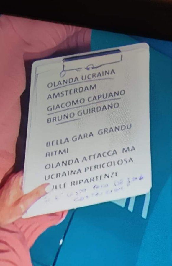 Bersagliata per una serie di strafalcioni anche su molti altri giocatori (“li sbaglia tutti, tranni quelli dell’Italia”), ha dovuto subire qualche presa in giro anche per la foto che impietosamente ritrae la sua cartellina, con alcuni appunti piuttosto terra-terra… e nemmeno scritti benissimo.