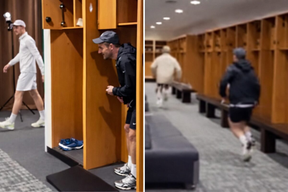 Nel dietro le quinte condiviso sui social, il suo team gli organizza un vero e proprio “agguato” negli spogliatoi: il coach Simone Vagnozzi e il fisioterapista Alejandro Resnicoff si nascondono negli armadietti in attesa del momento giusto.