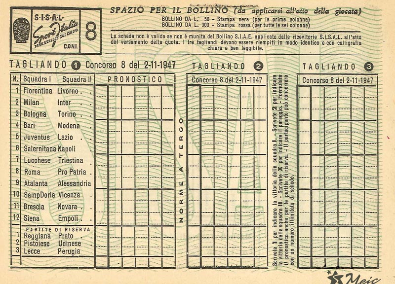 Totocalcio compie 75 anni, prima schedina nel 1946