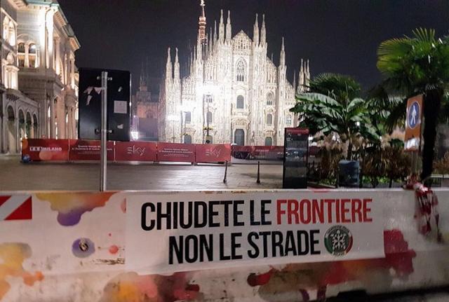 Milano, blitz di CasaPound: "Chiudere le frontiere, non le strade"Martedì, 21 novembre 2017Striscioni sulle barriere anti-terrorismo a difesa dei luoghi sensibili di Milano: "A rischio terrorismo a causa dell'immigrazione incontrollata"