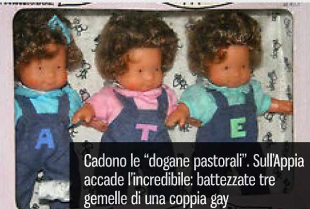 Battezzate 3 gemelle di coppia omosessuale. Fecondate in vitro da maternità surrogataMartedì, 2 febbraio 2016