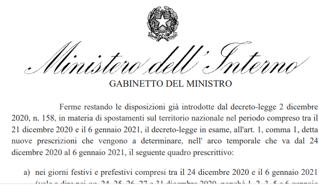 Decreto Natale: spostamenti, messe, amici, parenti: la circolare del ViminaleMartedì, 22 dicembre 2020DECRETO NATALE/ Spostamenti nella zona rossa: seconda casa, amici, parenti. Le faq del governo e la circolare del Viminale