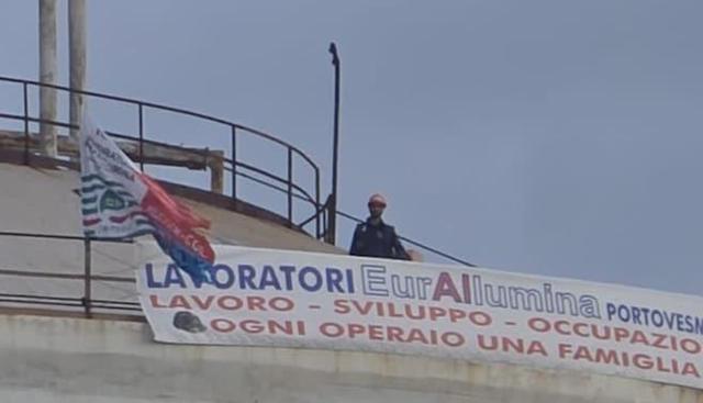 Eurallumina e crisi industriale nel Sulcis (Sardegna), operai su un silo a 40 metri d'altezza: "Il Mimit ci convochi"