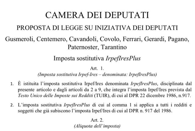 Flat tax al 15% sui redditi aggiuntivi. Il testo della proposta della LegaVenerdì, 8 febbraio 2019In attesa della tassa piatta per tuttti