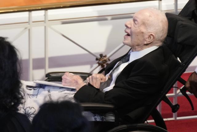 Usa, l'ex presidente Jimmy Carter al funerale della moglie RosalynnGiovedì, 30 novembre 2023L'ex presidente Usa Jimmy Carter, 99 anni, ha fatto una rara apparizione pubblica per unirsi ai suoi successori e a tutte e cinque le first lady