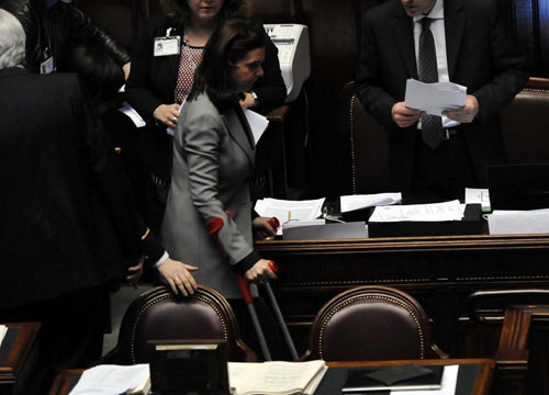 Cade sulla pista da sci. Laura Boldrini alla Camera con le stampelle