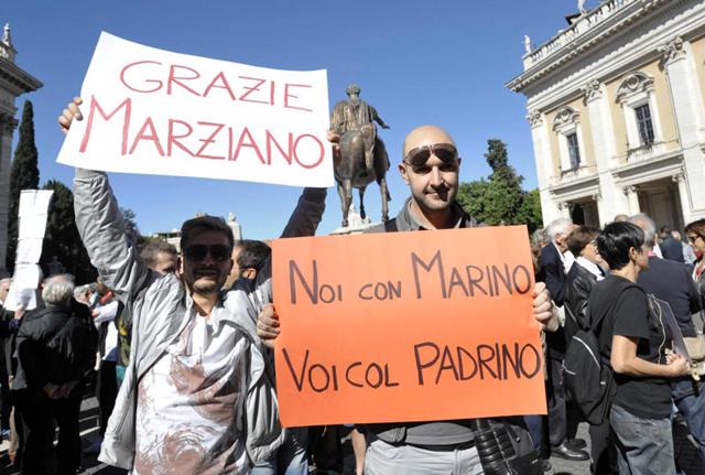"Ci hanno tolto il nostro voto". Manifestanti pro-Marino assediano il NazarenoLunedì, 12 ottobre 2015