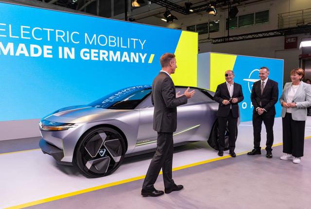 IAA 2023:Il cancelliere tedesco Olaf Scholz visita lo stand OpelMercoledì, 6 settembre 2023Florian Huettl, CEO di Opel: "Il nuovo logo Opel Blitz simboleggia il futuro elettrico del marchio"