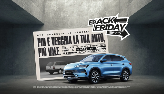 BYD Back Friday: permuta auto vecchia, bonus fino a 10.000€Martedì, 4 novembre 2025Per tutto novembre BYD lancia Back Friday: bonus fino a 10.000 euro sulla permuta, spinta alle auto elettriche e funzione V2L per un uso dell’energia più intelligente.