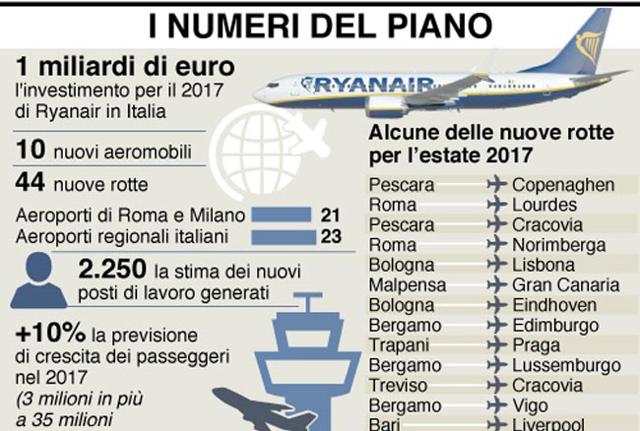 Ryanair investe un miliardo in ItaliaMercoledì, 17 agosto 2016La compagnia aerea low cost annuncia un piano di crescita record per il 2017
